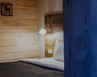 На территории комплекса есть русская баня на дровах и прорубь с ледяной водой. После таких развлечений постояльца предлагают расслабиться у камина и выпить горячего глинтвейна.