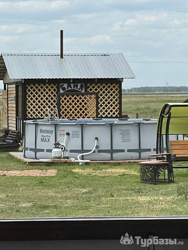 На уютной территории усадьбы есть бассейн, горячие души, чистые туалеты, летняя кухня, баня, качели, мангальная зона общего пользования, большая веранда.