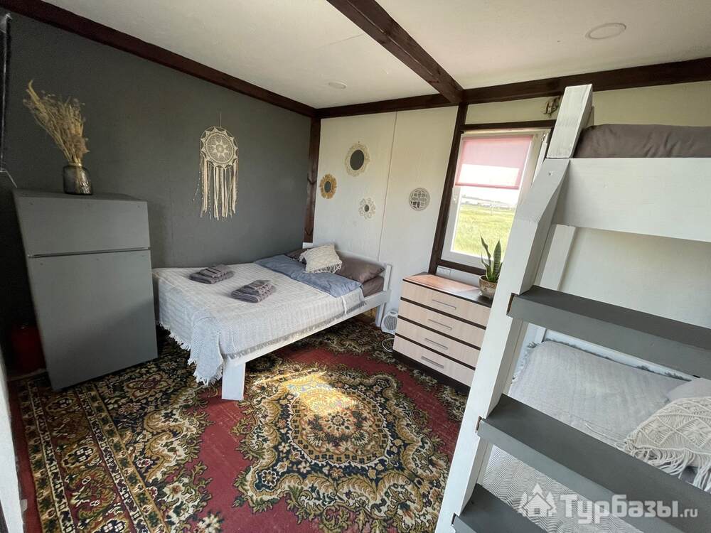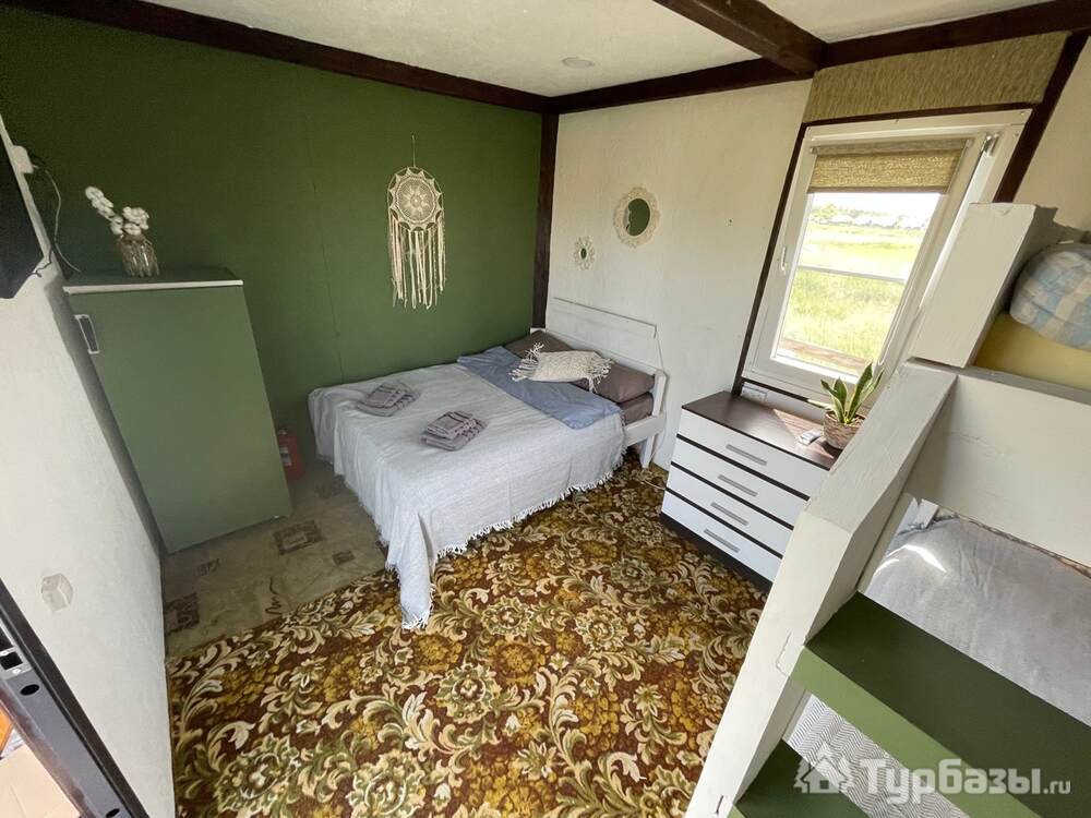 - двуспальная кровать, двухъярусная кровать, холодильник, телевизор, комод, постельное белье, полотенца.