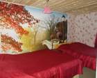 База семейного типа предполагает наличие больших кроватей для родителей и детей. Так же отдыхающие могут воспользоваться комодом, зеркалом и этажеркой. Изюминкой является индивидуальное цветовое решение каждого бунгало.