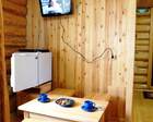 - Гостиная: двуспальный диван, столик, стулья, комод с посудой, холодильник, телевизор (спутниковое ТВ).