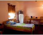 Комната эконом-класса расположена в отдельно стоящем коттедже №1 на первом этаже. Комната площадью 15 м2 с центральным отоплением, холодной и горячей водой, системой кондиционирования, ванной комнатой, телевизором, холодильником рассчитана на проживание 1 человека или семейной пары (две кровати, шкаф для одежды).