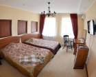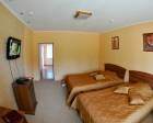 В номере: прихожая, шкаф, туалетная комната с душевой кабиной, кондиционер, плазменный телевизор, спутниковое ТВ. Спальня: две кровати 1,4 х 2 м, стол, стул, прикроватные тумбочки, комод.