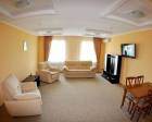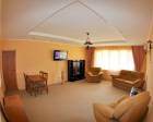 В номере две комнаты. В номере: прихожая, шкаф, холодильник, туалетная комната с душевой кабиной, туалетная комната с гидромассажной ванной, кондиционер, два плазменных телевизора, спутниковое ТВ. Спальня: кровать 1,8 х 2 м, стол, стул, прикроватные тумбочки, комод. Гостиная: раскладывающийся диван 1,3 х 1,9 м, кресла, стол, стулья.