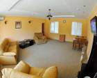 В номере: прихожая, шкаф, холодильник, туалетная комната с душевой кабиной, кондиционер, два плазменных телевизора, спутниковое ТВ. Спальня: две кровати 1,4 х 2 м, стол, стул, прикроватные тумбочки, комод. Гостиная: раскладной диван 1,3 х 1,9 м, кресла, стол, стулья.