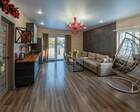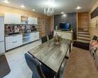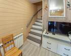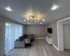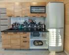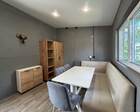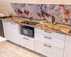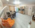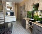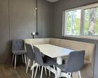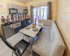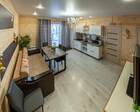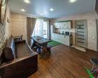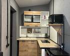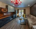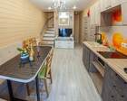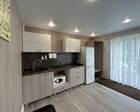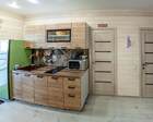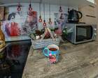 - Кухонной зоной с микроволновкой и электрочайником, холодильником, обеденным столом и феном,