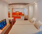- Просторные апартаменты с кухней, балконом и всей необходимой техникой: есть варианты как для пар, так и для семей с детьми.