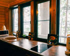 - Дом (100 м2) — до 10 гостей, две спальни, большая гостиная с видом на озеро, оборудованная кухня и ванная комната.