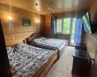 Малый дом: двухэтажный деревянный сруб с игровой зоной на первом этаже: бильярд (10 футов), дартс, настольные игры так же имеется сан. узел. На втором этаже располагается две спальни (двухспальные кровати), гостиная, сан. узел с душевой кабиной.