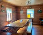 Большой дом: двухэтажный деревянный сруб рассчитанный на 12 человек ( возможно более), отопление водяное, постоянное, от своей котельной. На втором этаже 5 спальных комнат, в которых по две кровати. На первом этаже находится большая гостиная с караоке, музыкой и спутниковым ТВ; полностью оборудованная кухня; сан. узел и душевая кабина.