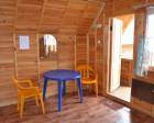 На охраняемой, огороженной территории предлагается два варианта расселения. Оборудовано 17 отдельных деревянных домиков в стиле сибирских селений и отель с четырьмя однокомнатными и четырьмя двухкомнатными номерами. В отапливаемых постройках есть необходимая мебель, телевизор, теплый душ, туалет. Расстояние до берега Байкала составляет 700м.