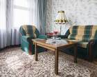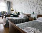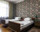 Две полуторных кровати, стол, кресла, шкаф, телевизор, электрочайник, телефон, холодильник. Ванная комната с унитазом, ванной, раковиной и биде. Гладильная комната на этаже.