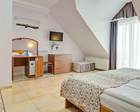 Комплекс состоит из двух корпусов, фондом в 18 комфортабельных номеров категории «Стандарт» и «Полулюкс», с видом на парк и Балтийское море. Комнаты просторные, есть мебель и современная техника. Работает спутниковое ТВ и интернет. Ценные вещи и документы гости смогут хранить в сейф. При необходимости предоставляются гладильные принадлежности.