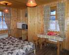 Проживают гости в домиках из бревен по типу старинных русских срубов. Номера упрощенной категории «эконом» и улучшенного класса «комфорт» имеют все удобства и укомплектованы необходимой мебелью. Гостевые комнаты повышенной комфортности оснащены холодильниками, электрическими чайниками и телевизорами. Мини-кухня есть только в одном домике.