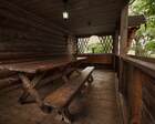 - Деревянная русская баня расположена на берегу озера, в которое ныряют после парилки. Банька оснащена самоваром, и необходимыми атрибутами для полезного чаепития.