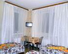 Отдельные домики со всеми удобствами на 8 чел., современные номера со всеми удобствами, в т.ч. люкс. Стоянка автомобиля во дворе и перед отелем бесплатная. Русская баня, финская сауна, кедровая бочка, беседки с мангалом, весельные лодки (3 шт.), катамаран, удочки, рыбалка летняя и зимняя, настольный теннис, бильярд, бадминтон, детская площадка с летним бассейном, батутом и гамаком, велосипеды, птичник. Питание в собственной столовой. |