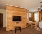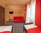 Шале представляет собой трехэтажное здание, в котором находятся 7 спальных комнат. Они оборудованы одноместные и двухместными кроватями. Одновременно в доме могут проживать до 18 человек.