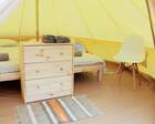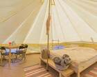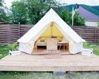 Гости размещаются в удобных палатках. Внутри стандартного номера есть двуспальная кровать, комод, лампа и стол со стульями. Глэмпинг предоставляет постельное белье, пледы и бокалы. Дополнительно можно арендовать решетку или шампуры для приготовления блюд на огне.