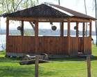 Рядом с каждым из коттеджей есть дровяная баня и крытая беседка. Среди зеленых лужаек устроены небольшие искусственные водоемы, где можно искупаться и детям, и взрослым. На просторном участке базы предусмотрено место для мангалов и спортивных игр. Любителям рыбной ловли понравится коротать время с удочкой на реке в специально обустроенном месте.