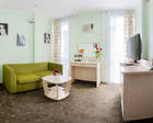 Летом в отеле работает открытый бассейн с пресной водой, которую при необходимости подогревают. Этот бассейн можно назвать миниаквапарком: в нем есть горки, система противотока, «лягушатник», водопад, гейзерная и гидромассажная установки.