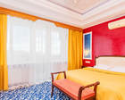 Фресками украшены стены гостиницы, изящными скульптурными композициями – помещения. Солнечное настроение в номерах создают полотна местных художников. В холлах можно любоваться репродукциями картин итальянского мастера Карло Боссоли, на которых увековечены чарующие крымские пейзажи.