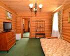 - Главный корпус гостевой усадьбы, который построен исключительно из дерева. Весь номерной фонд здесь представлен в категории «люкс».