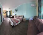 1 комната: 2х спальная кровать, диванчик раскладной двуспальный, комод, шкаф, телевизор, кондиционер. 2 комната: 2х спальный диван, телевизор, обеденный стол, уголок, кондиционер. В кухне электроплита, электрочайник, холодильник, стиральная машинка, мойка, вся посуда. Санузел (хол, гар. вода) Размещение 1-6 чел.