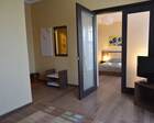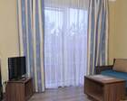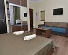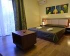 В номерах установлена комфортная мебель (кровать на две персоны с ортопедическим матрасом, диван). Также есть вся другая необходимая для комфорта мебель: сейф, шкаф. В наличии современная сантехника, фены, телевизор-плазма, кондиционер. В номерах установлены панорамные окна с выходом на большой балкон.