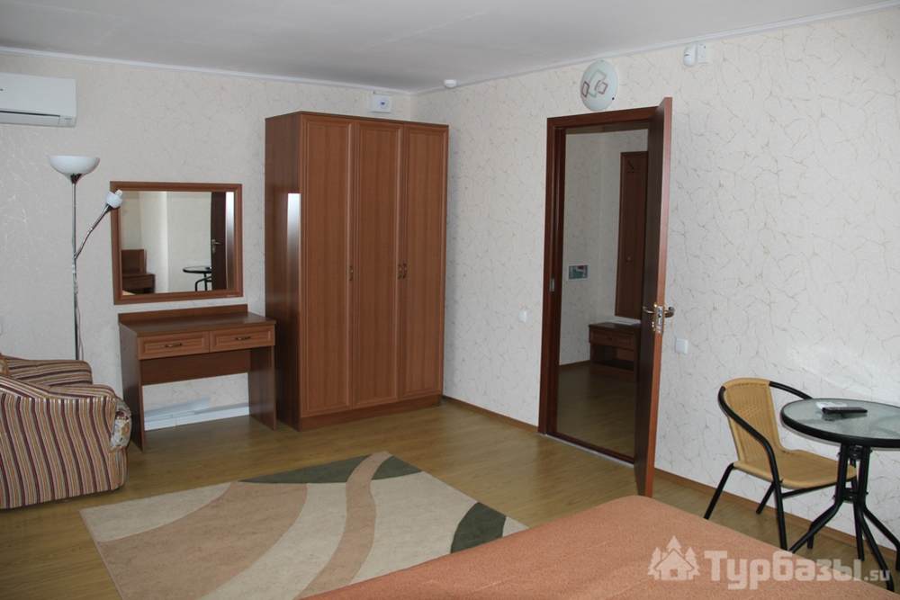 Для заселения в пансионате предлагаются помещения в корпусах и домах коттеджного типа. Помимо стандартного набора удобств (душ, санузел, раковина для умывания) в номерах есть холодильники, телевизоры и кондиционеры. В счет включена стоимость проживания, трехразового питания и пребывания на пляже.