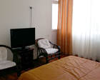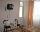 Здание жилого девятиэтажного корпуса с лифтами и свободными вестибюлями построено в 1990 году. Для заселения гостям предлагаются удобные номера различных классов комфортности, рассчитанные на двух и трех человек. Всего номеров – 66. В счет за проживание включена стоимость двухразового питания (утром и вечером), за заказ обедов нужно доплачивать. Столы накрывают в двух залах другого корпуса.