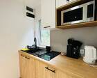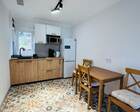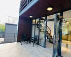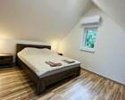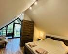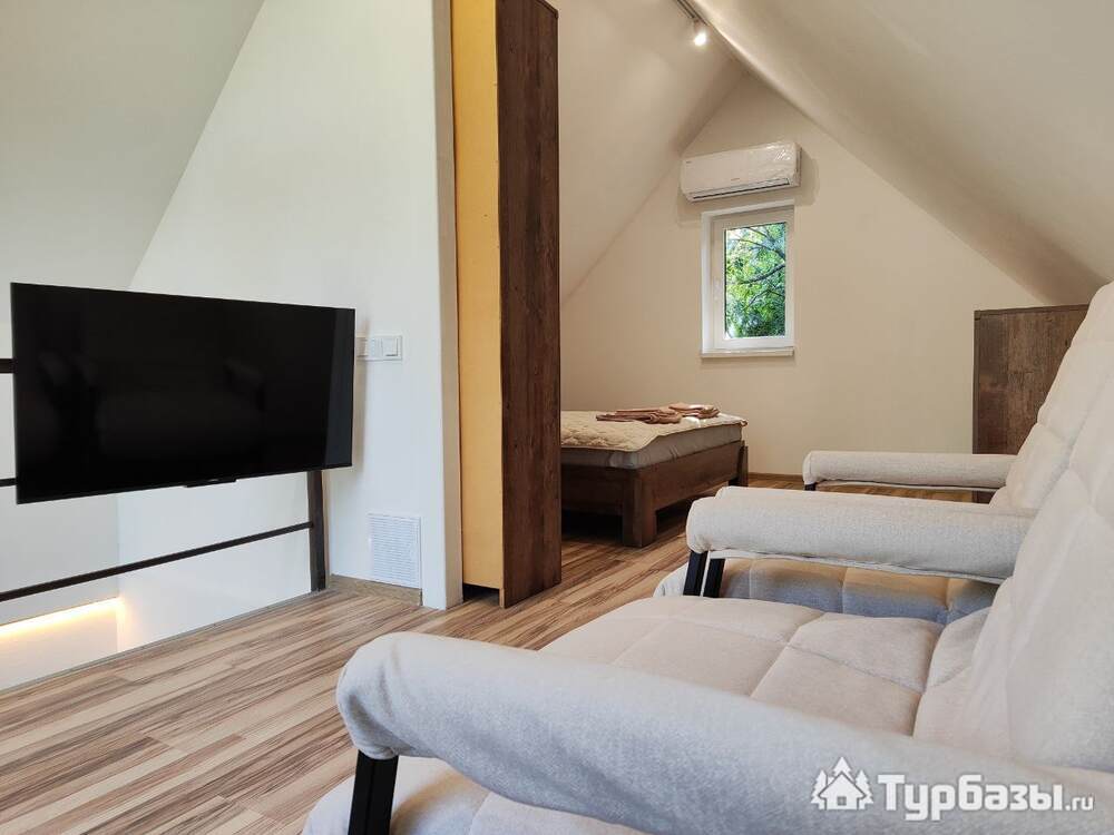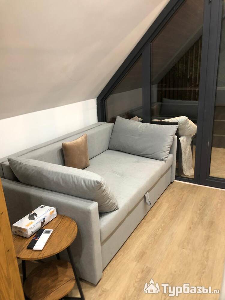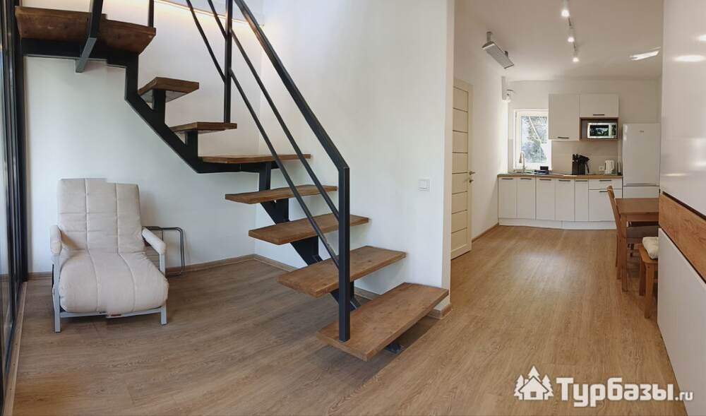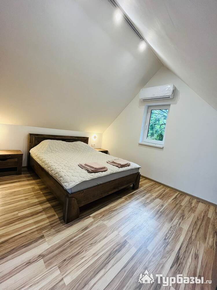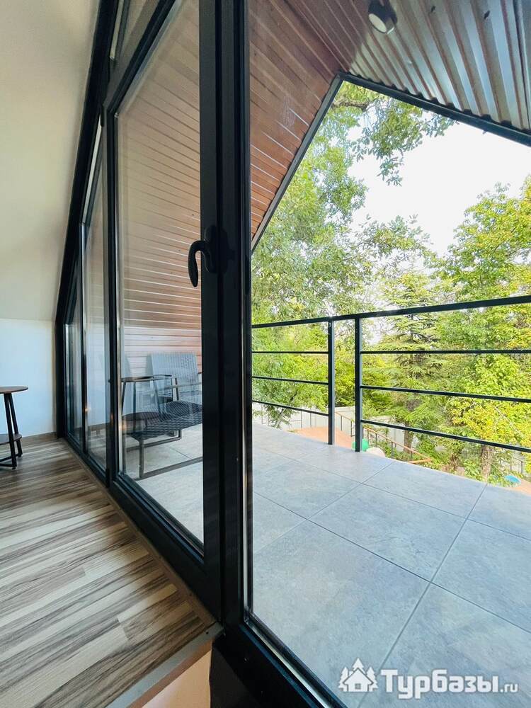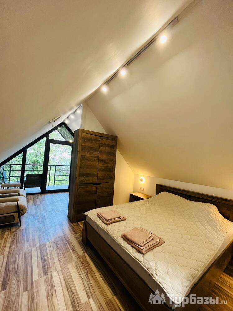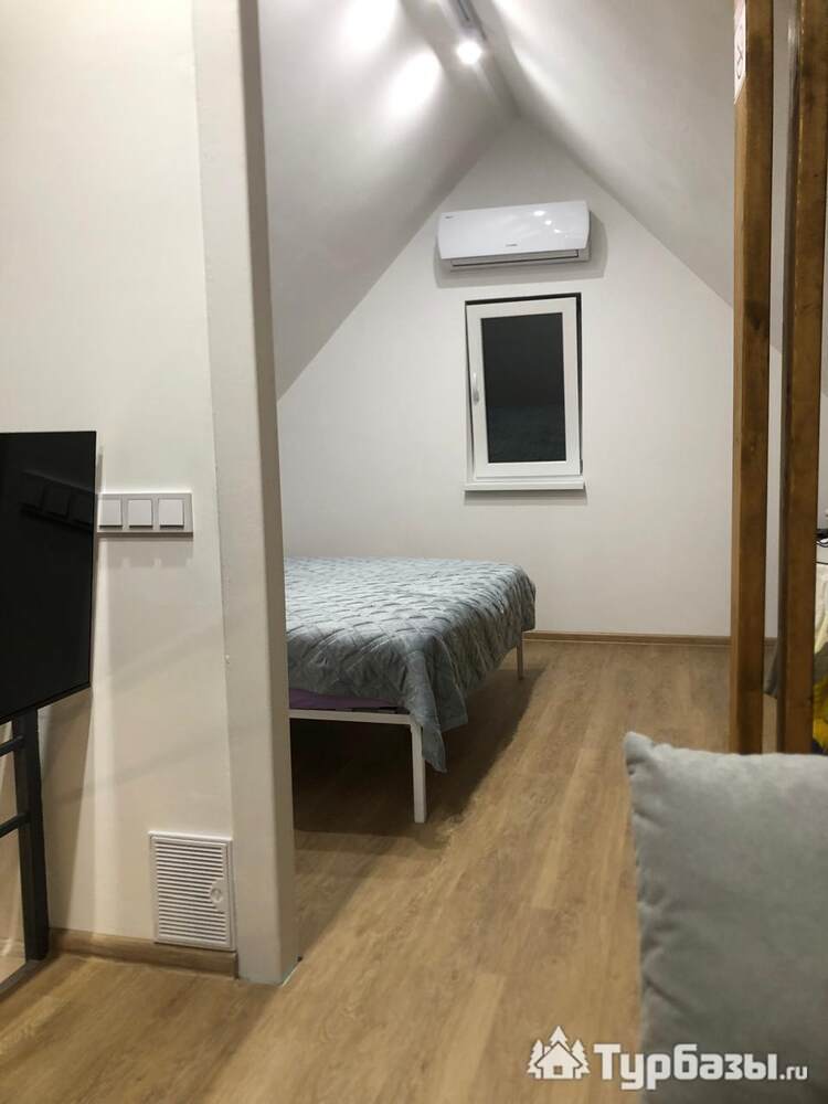 На территории расположен 2-х этажный домик с отдельным входом, широкими балконами на первом и втором этажах. Дом рассчитан на проживание до 4-х человек (2-х спальная кровать и два кресло-кровати). На первом этаже кухня-гостиная и санузел с душем. В домике новое оборудование, включая кофемашину.