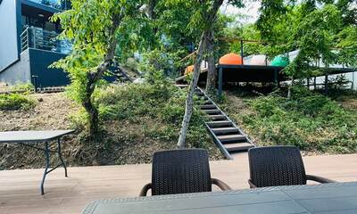 Новое прекрасное место, где можно замечательно отдохнуть наедине с природой недалеко от пляжа на Южном берегу Крыма (ЮБК). Необычная, с любовью и современным дизайном обустроенная территория, на склоне горы, граничащая с Никитским ботаническим садом! Живешь практически в лесу над морем и под горами, что дает целебное сочетание лесного, горного и морского воздуха! Это очень необычная и комфортная локация для отдыха на ЮБК.