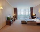 Гостиница располагает собственным галечным пляжем, к которому ведет частная канатная дорога. Инфраструктура пляжной зоны – бассейн с морской водой, джакузи, детский лягушатник и игровая площадка, шезлонги с матрасами, навесы от солнца, собственный причал.