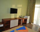 Гости проживают в современных жилых корпусах. Здесь есть номера разного уровня комфорта и разной вместительности. Всего в нескольких метрах расположен пляж. Из окон апартаментов открывается красивый морской пейзаж. Каждый номер оснащен санузлом, ванной комнатой, холодильником, плазменным телевизором, системой кондиционирования и просторным балконом.