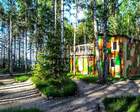 Для проживания предоставляются два дома из бруса, оснащенные всеми необходимыми удобствами. Коттедж с террасой рассчитан на одновременное проживание 10 человек. В нём оборудованы спальни, гостиная с панорамными окнами, открывающими потрясающий вид на озеро. Современная мебель, удобная кухня с требуемой бытовой техникой, санузлы на каждом этаже. Двухэтажный Дом у камня имеет меньшие размеры, но в уютных помещениях есть все необходимое для хорошего отдыха. А с небольшого балкончика можно долго любоваться водной гладью озера. Летом предлагается полежать на солнце на песчаных пляжах озера. Питание на базе выполняется самостоятельно. На базе есть удобные спортивные площадки, работает служба проката лодок, рыболовной снасти, велосипедов, квадрациклов. Прилегающая территория украшена, ухожена.