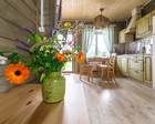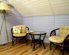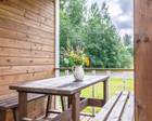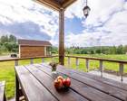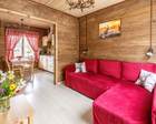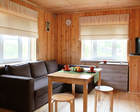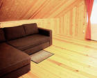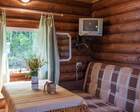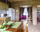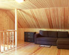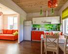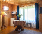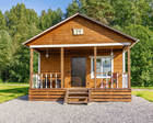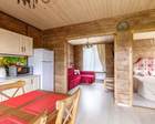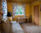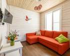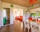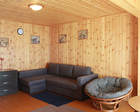 Комфортабельный коттедж до 4-х человек с террасой. Одноэтажный коттедж с планировкой студии, выделенной зоной с двухспальной кроватью и кухней-гостиной с диваном (раскладывающийся, двухспальный), с камином и сауной.