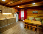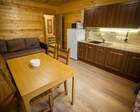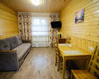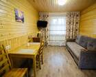 ● Кухня-гостиная с раскладным диваном, обеденным столом, камином, спутниковым TV. Есть холодильник, микроволновка, электрический чайник.