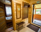 1 этаж. Спальня с тремя односпальными кроватями. Гостиная с двуспальным раскладным диваном, телевизором и мини-кухней (холодильник, микроволновка, электрический чайник). Санузел с душевой кабиной, туалетом, раковиной.