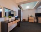 2 раздельные комнаты, 2 спальная кровать 2 шт., прикроватные полочки, тв, шкаф, душ, туалет, 4 больших полотенца, 4 маленьких, диспенсер мыло, 2 стакана.