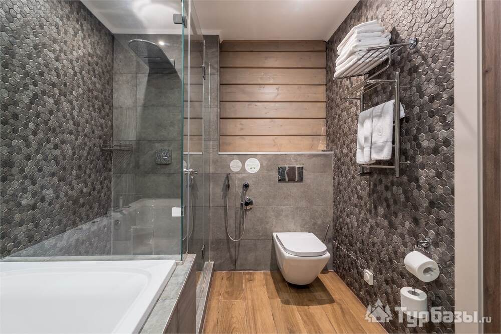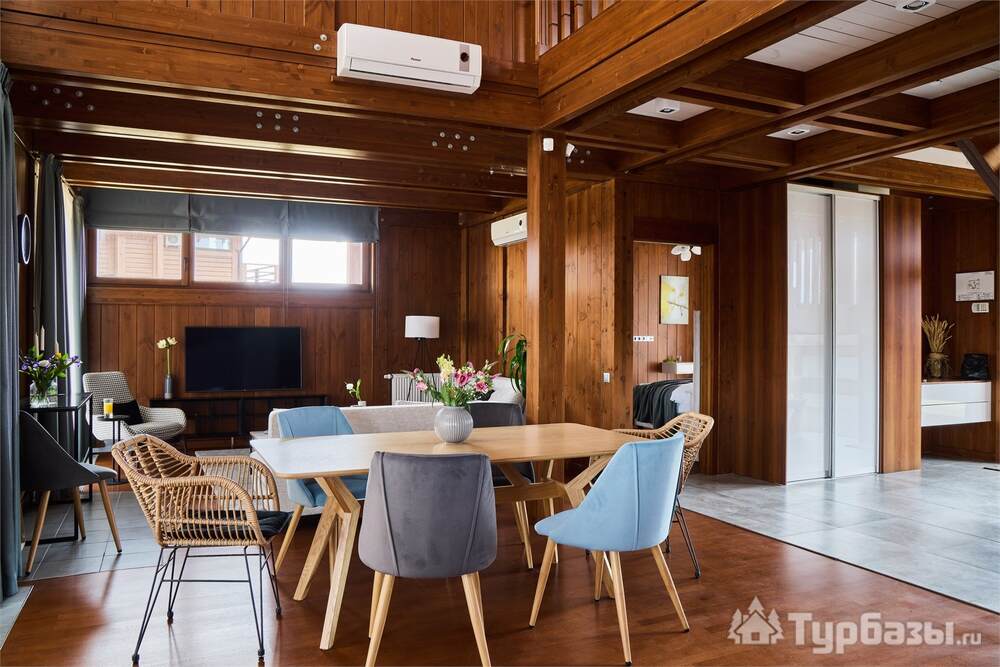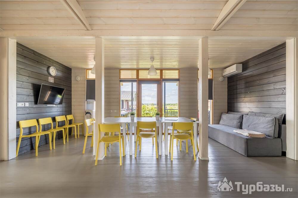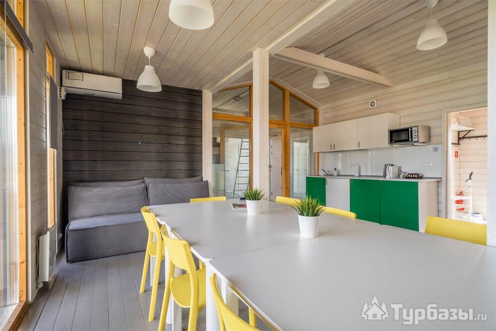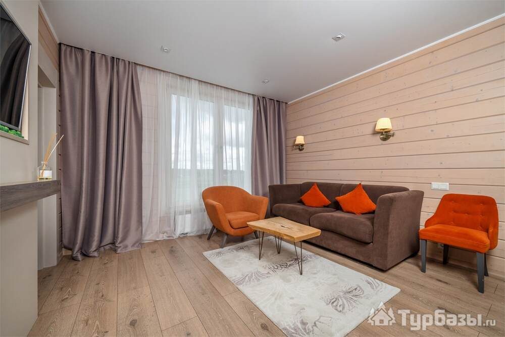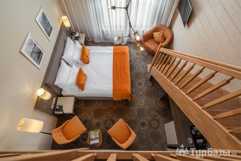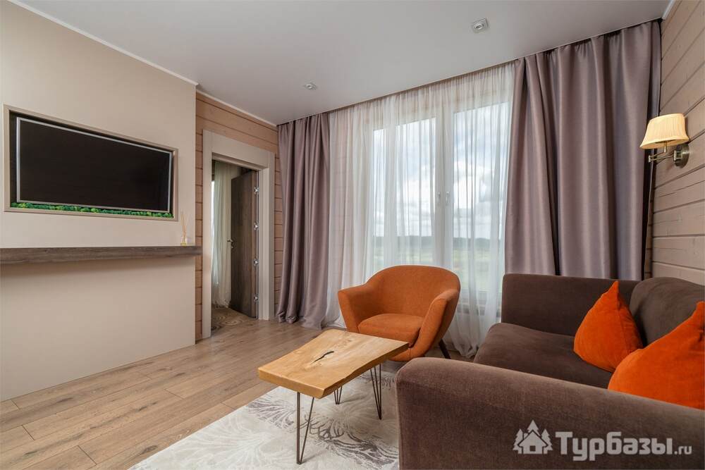 На территории работает четырёхзвёздочный отель и набор уютных бунгало/коттеджей — вариант размещения под любой формат: деловая поездка, семейный уик-энд или отдых с друзьями. Номера оформлены в современном стиле и рассчитаны на разные потребности гостей: стандартные комнаты, повышенные категории и сьюты; часть коттеджей оборудована собственными мангальными зонами и террасами. Завтраки обычно включены в стоимость размещения.