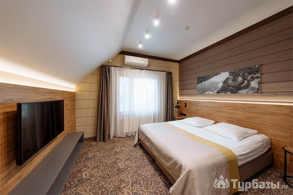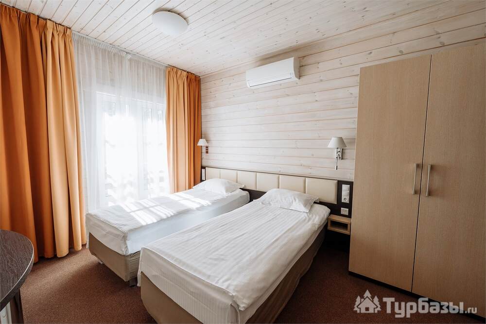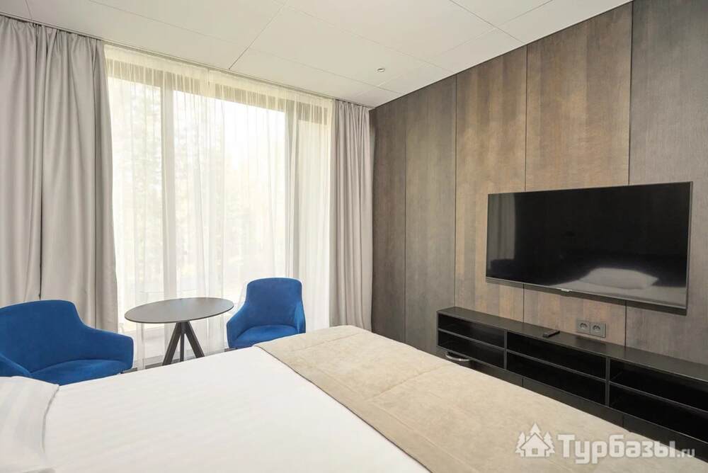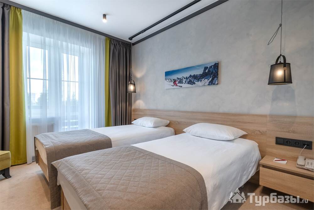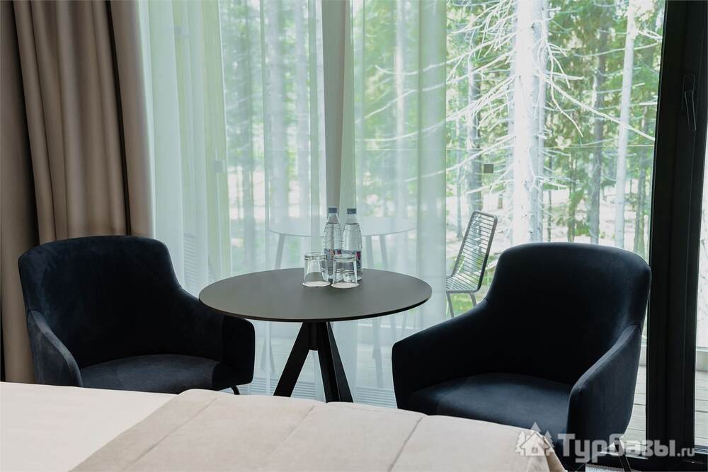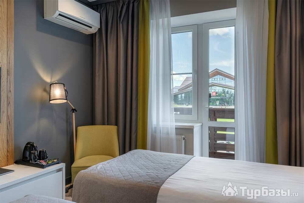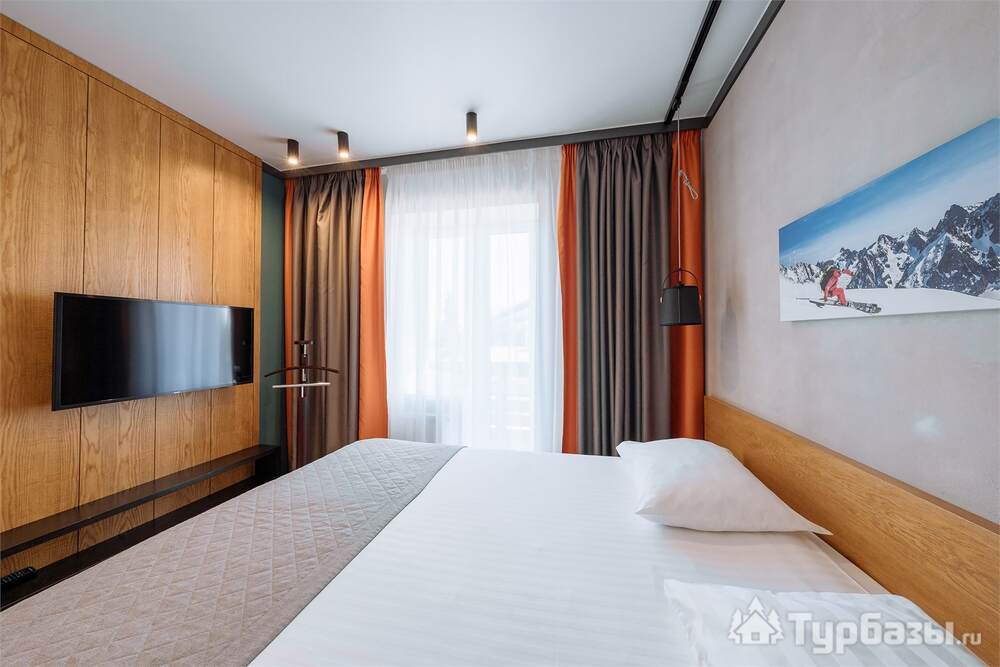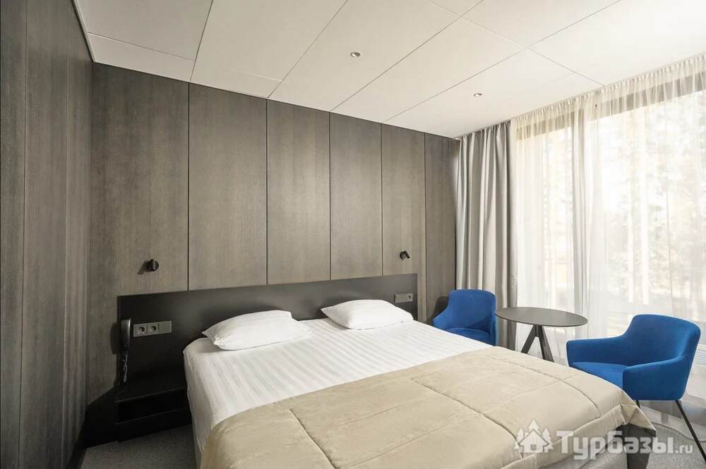 Проживание на курорте организовано в нескольких форматах — от классического отеля до апарт- и коттедж-зоны. Гостиничная часть предлагает стандартные номера и семейные апартаменты с видом на сосновый бор; отдельно выделены коттеджи и таунхаусы для тех, кто приезжает компаниями или на длительный отдых. Для быстрых спортивных заездов есть апарт-отель у подножия склонов — удобно добираться до трасс пешком или на шаттле.