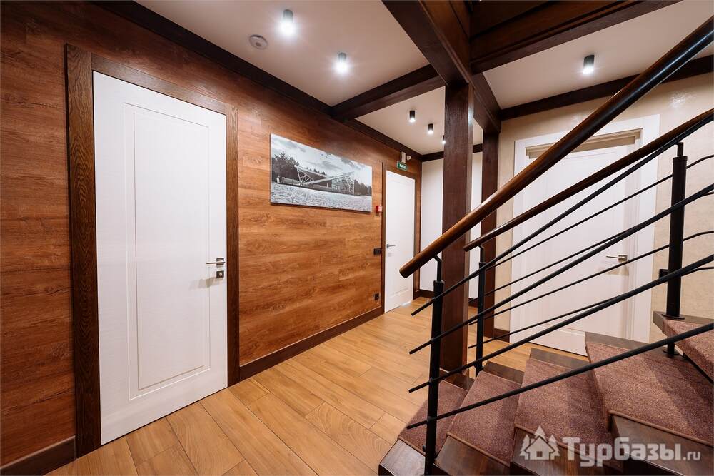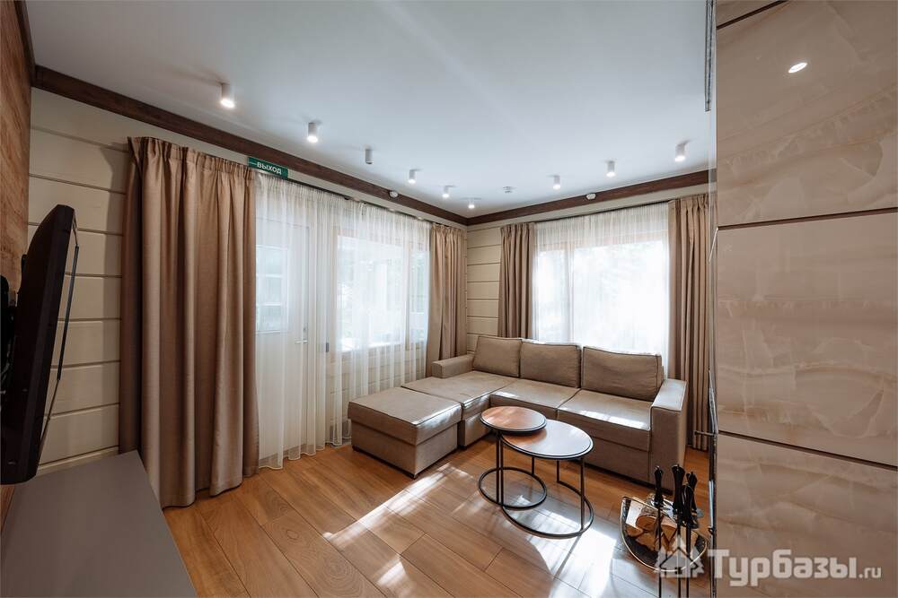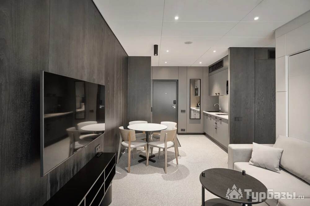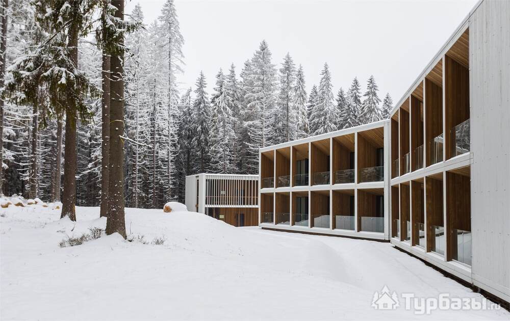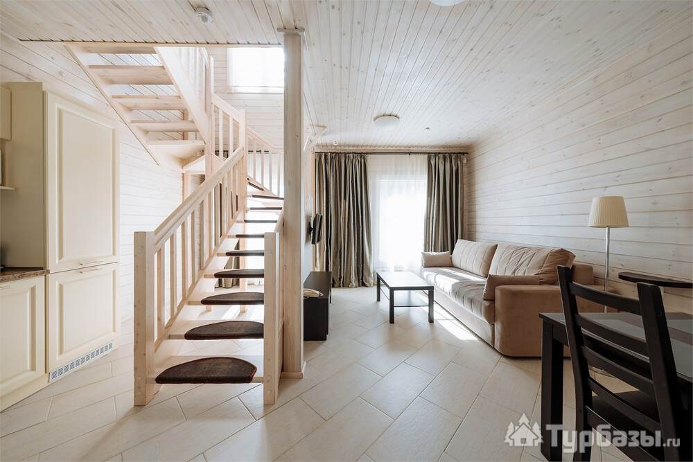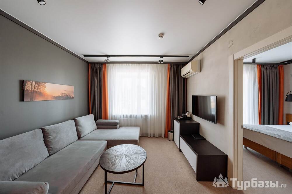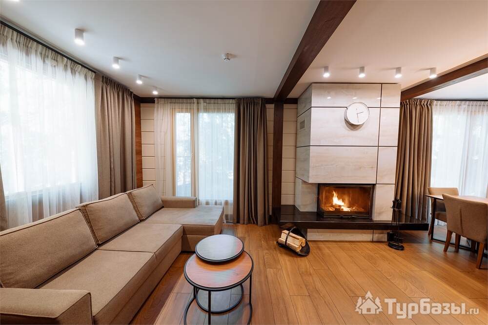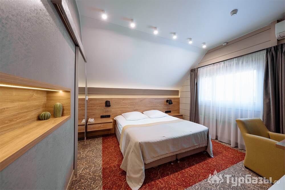 Проживание на курорте организовано в нескольких форматах — от классического отеля до апарт- и коттедж-зоны. Гостиничная часть предлагает стандартные номера и семейные апартаменты с видом на сосновый бор; отдельно выделены коттеджи и таунхаусы для тех, кто приезжает компаниями или на длительный отдых. Для быстрых спортивных заездов есть апарт-отель у подножия склонов — удобно добираться до трасс пешком или на шаттле.