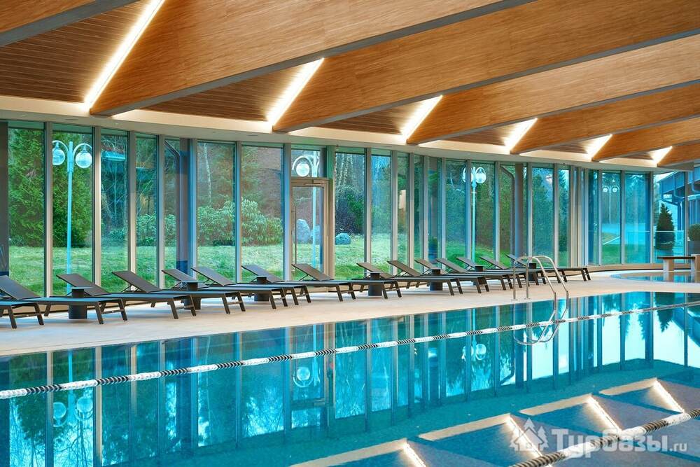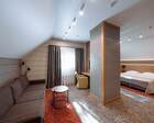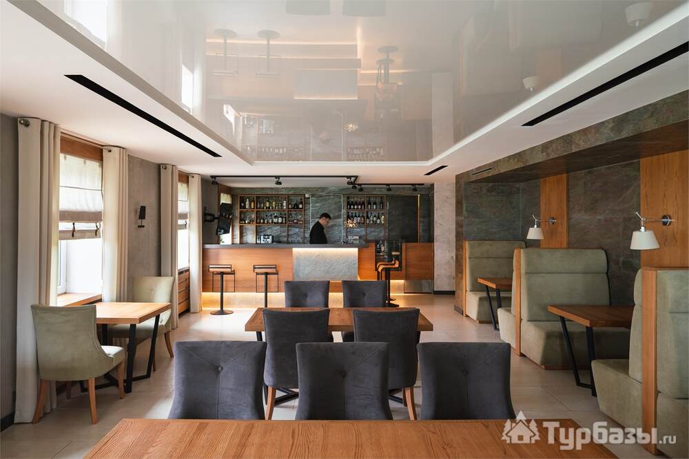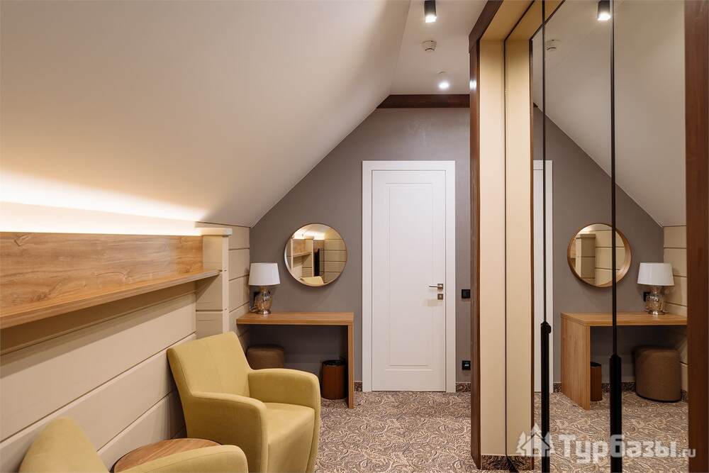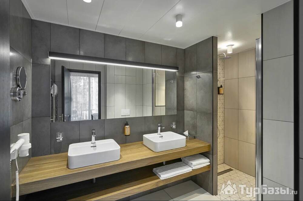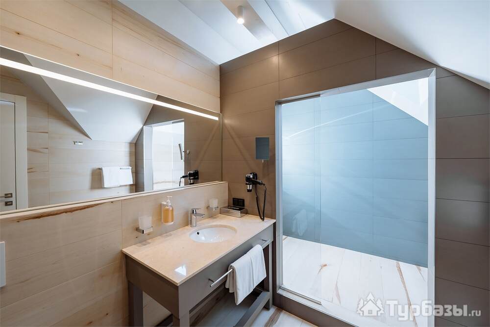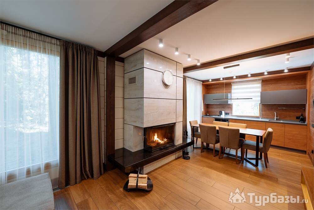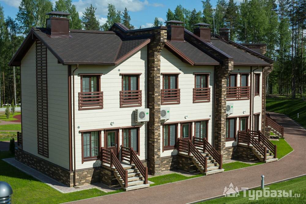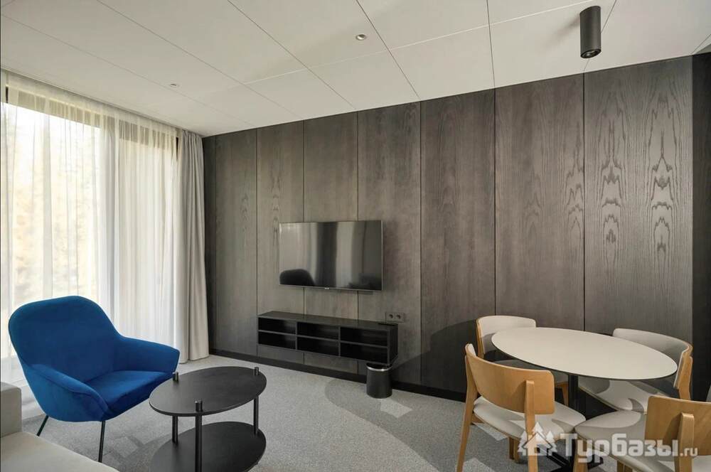 Проживание на курорте организовано в нескольких форматах — от классического отеля до апарт- и коттедж-зоны. Гостиничная часть предлагает стандартные номера и семейные апартаменты с видом на сосновый бор; отдельно выделены коттеджи и таунхаусы для тех, кто приезжает компаниями или на длительный отдых. Для быстрых спортивных заездов есть апарт-отель у подножия склонов — удобно добираться до трасс пешком или на шаттле.