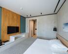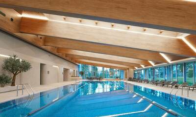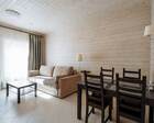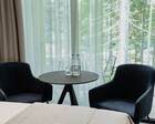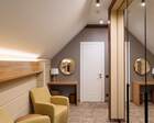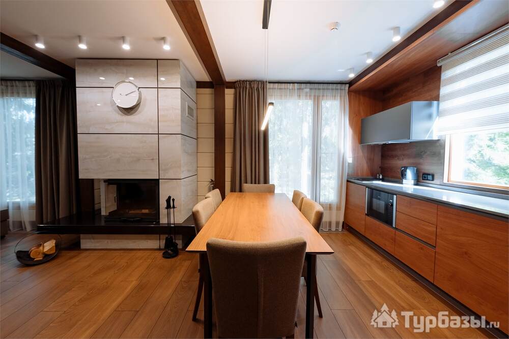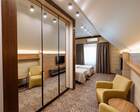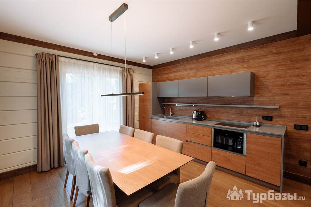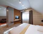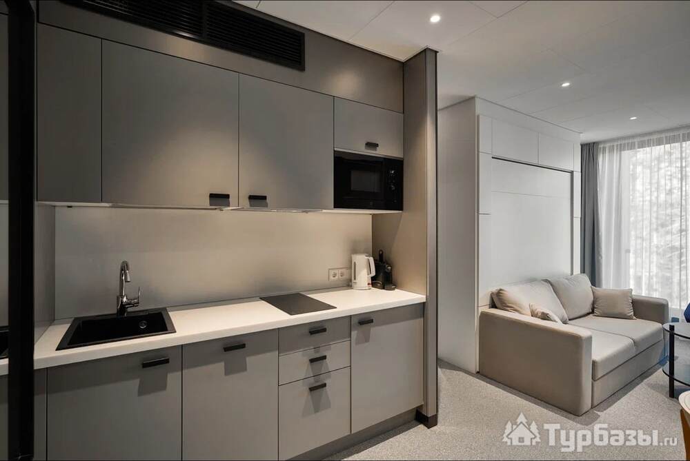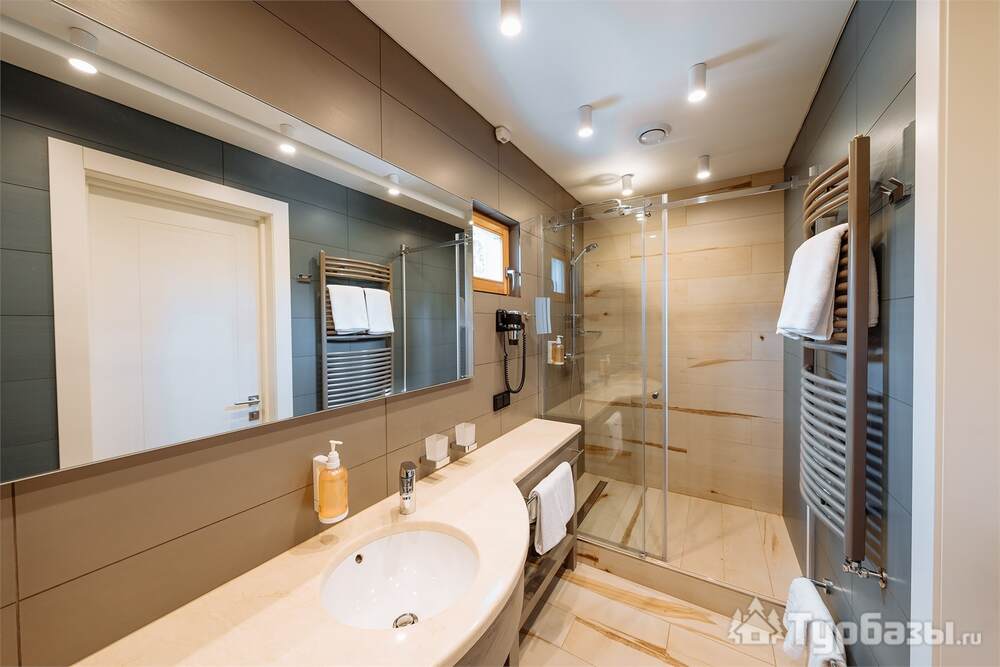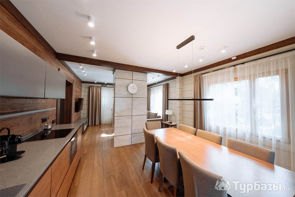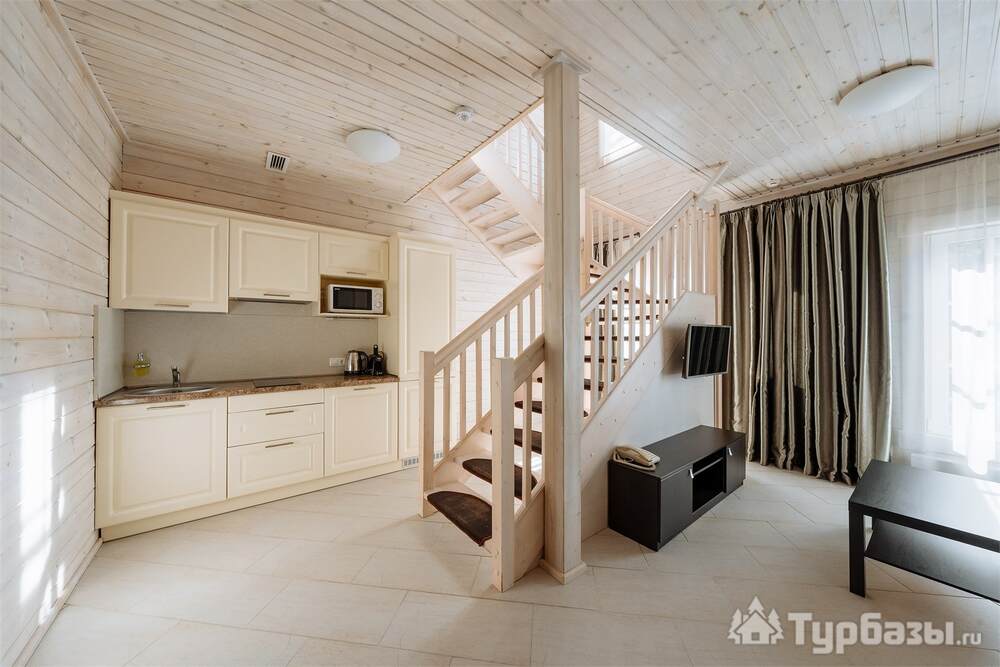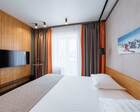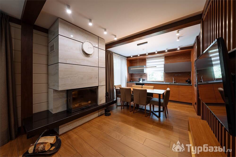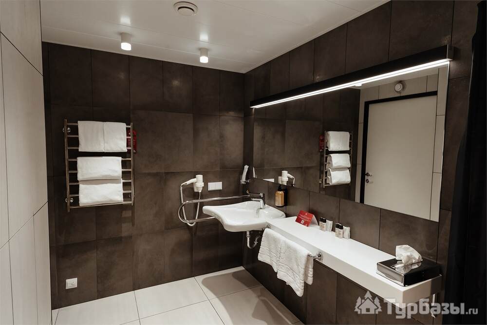 Проживание на курорте организовано в нескольких форматах — от классического отеля до апарт- и коттедж-зоны. Гостиничная часть предлагает стандартные номера и семейные апартаменты с видом на сосновый бор; отдельно выделены коттеджи и таунхаусы для тех, кто приезжает компаниями или на длительный отдых. Для быстрых спортивных заездов есть апарт-отель у подножия склонов — удобно добираться до трасс пешком или на шаттле.