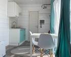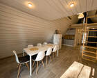 Из удобств в каждом домике: мини-кухня со всем необходимым (микроволновка, холодильник, варочная панель, посуда, губки, жидкость для мытья посуды); бесплатный Wi-Fi; два элемента отопления: тёплый пол, конвектор; ортопедические удобные матрасы, хлопковое постельное белье; панорамное окно, природа, озеро в пяти минутах ходьбы; собственная терраса с террасной мебелью, мангал.