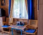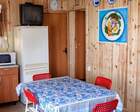 Гостям предлагается просторное деревянное здание с тремя спальными комнатами. Вместе с двумя дополнительными кроватями в них размещается 8 человек. В помещениях есть телевизор и другое необходимое оборудование. Работают душ, раздельный санузел. Комнаты красиво отделаны деревом внутри и снаружи.