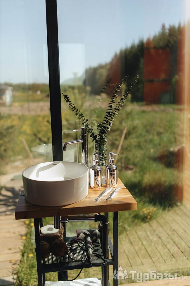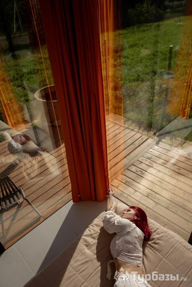 Комплекс предлагает несколько авторских домиков — уютные домики на 2–4 гостя и романтичный Зеркальный дом. Во всех вариантах есть базовый гостиничный набор: тёплое электрическое отопление/кондиционер, комфортные кровати, проектор для фильмов и быстрый Wi-Fi; часть домиков рассчитана на размещение с питомцами. В некоторых юнитах на территории — горячая купель и банька, которые арендуются вместе с домиком.
