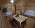 1 этаж – небольшой холл с мягкой мебелью и камином, полностью оборудованная кухня (плита, холодильник, вся необходимая кухонная и столовая посуда), парная на дровах, санузел с душевой кабиной, терраса с видом на озеро (самый ближний к озеру коттедж, до озера 20 метров)