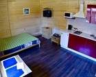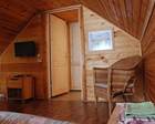 2 этажа, 6 спален, оборудован горячем и холодным водоснабжением, ТВ, санузел с душем, холодильник, микроволновая печь, электрочайник, отопление, столовые и кухонные приборы, шампура, мангал. Первый этаж: Кухня с газовой плитой, эл. чайник, холодильник, СВЧ, набор посуды. Так же три спальни с 2-х спальными кроватями, каминная комната с двумя разборными 2-х спальными диванами и телевизором. Душевая и туалет. Второй этаж: две спальни в каждой находятся по две 1.5 спальные кровати, телевизор, кабельное телевидение.