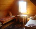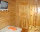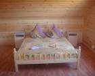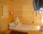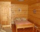 Коттедж рассчитан на 2 человека, площадью 29,9 кв. м., идеальный вариант для тихого семейного отдыха. Просторная спальная комната с двуспальной кроватью и раскладным диваном, так же в комнате есть два кресла, ЖК телевизор и журнальный столик.